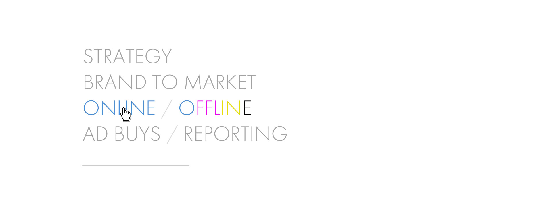 We lead in strategic thinking, creative brand design, web strategy, hyper-targeted and online advertising. If you’re interested in data driven business intelligence reporting, please visit Simple !nsights, where we juggle revenue and performance metrics for enterprise level solutions.